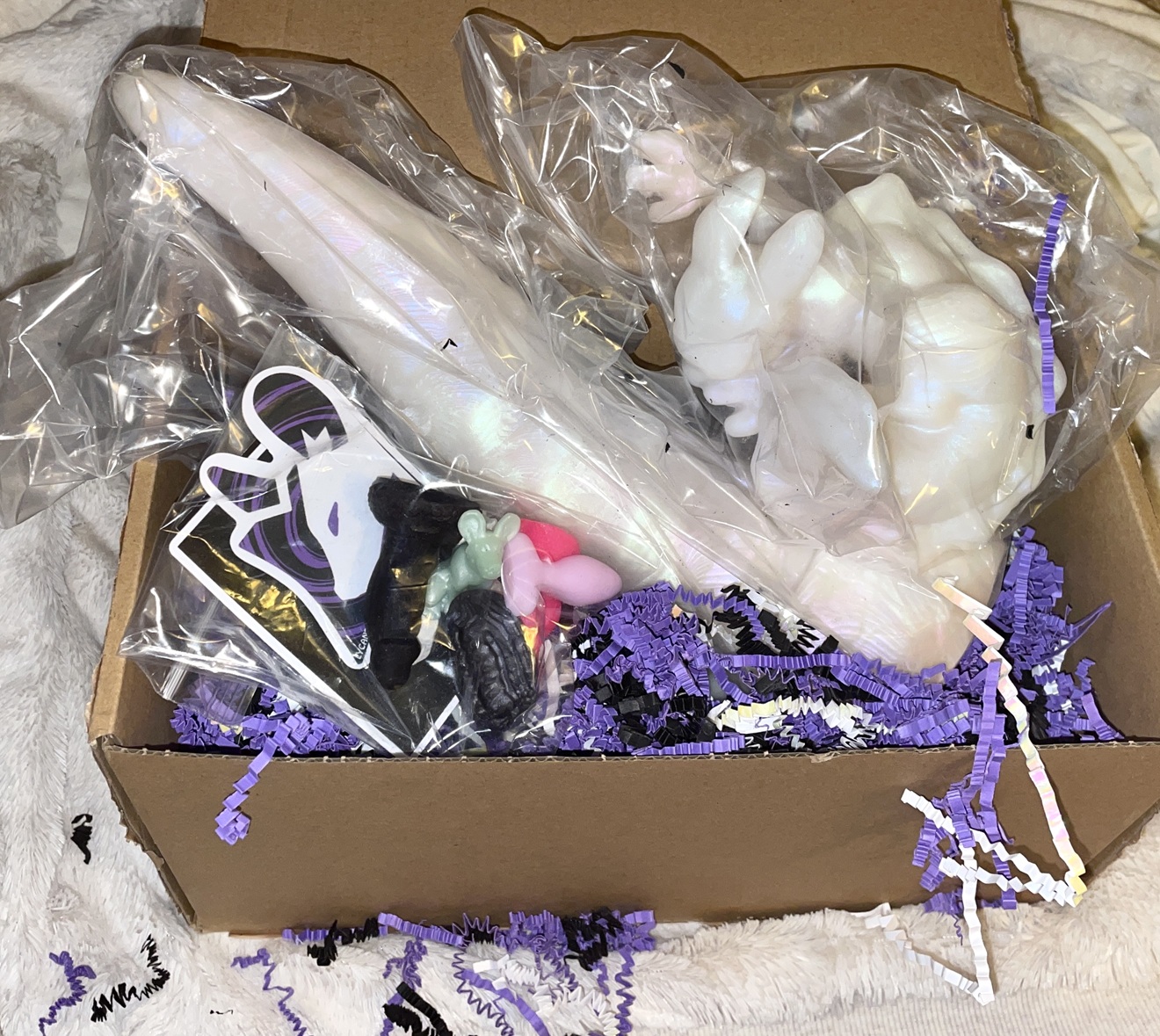 My Ember is in the Black Friday 2025 coloration Radiant Opal, which is pearly white with green, blue, and pink shimmer. The shimmer distribution comes down to the luck of the draw; my Ember’s shimmer is primarily green. The Black Friday colors that Lycantasy offers are always gorgeous and come with a discount (35% in this case), but they’re limited to once a year, and the colors are different each year.